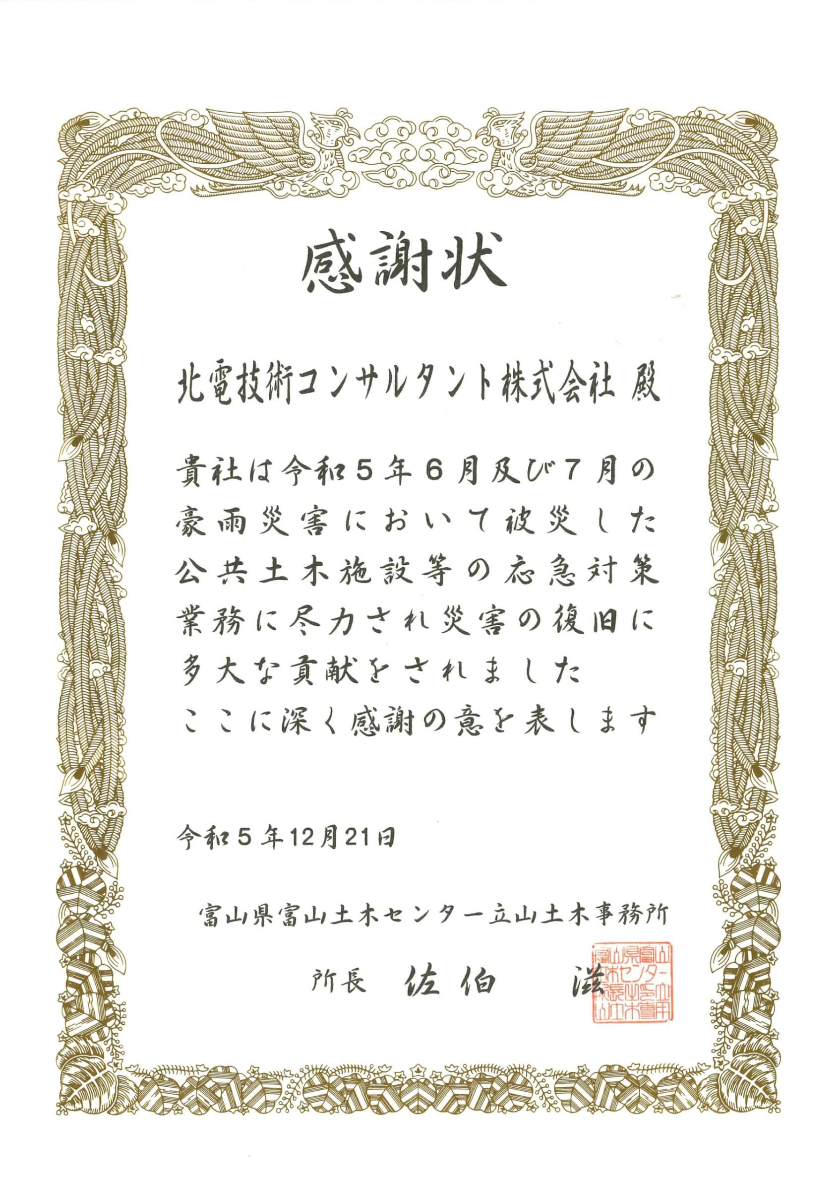 感謝状